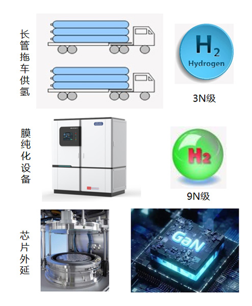 創(chuàng)新:在PEM/ALK/AEM電解水制氫、甲醇重整制氫和氨裂解制氫系統(tǒng)中,采用膜純化取代變壓吸附PSA和變溫吸附TSA,實(shí)現(xiàn)了整體設(shè)備的小型化、輕量化、撬裝化,而且氫氣純度達(dá)到99.99999+%